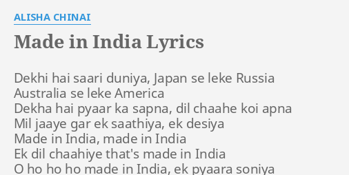 Made In India Lyrics By Alisha Chinai Dekhi Hai Saari Duniya